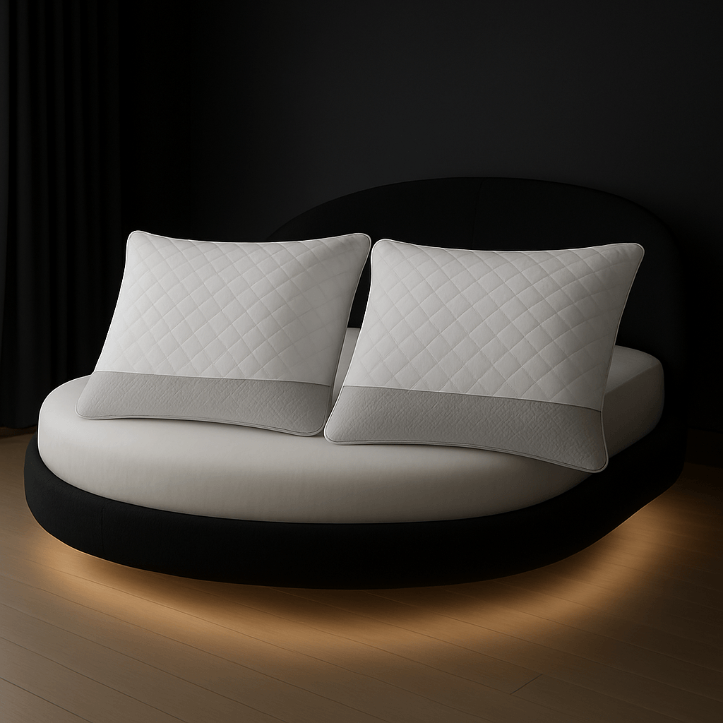 Experience the perfect balance of luxury and support with our premium memory foam performance pillows, designed to elevate your sleep in style. Set against a modern, LED-lit bedroom backdrop, these ergonomically contoured pillows provide unmatched comfort and pressure relief for all sleep positions. Crafted with high-density memory foam and encased in a soft, breathable cover, they promote proper alignment and a restful night’s sleep. Whether you’re redesigning your room or simply upgrading your rest, these pillows combine elegance and functionality—making them the ultimate choice for those who value both aesthetics and wellness.