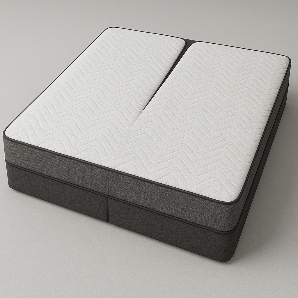 A split top king mattress, also known as a split head king, features a divided top portion—usually the upper third—while the lower part remains connected. This design allows independent adjustment of the head section for each sleeper, perfect for couples using an adjustable bed who want personalized head elevation without losing the unified feel of a single mattress. Measuring 76 inches wide by 80 inches long, it offers both spaciousness and customization, making it a popular choice for comfort and convenience in shared sleeping arrangements.